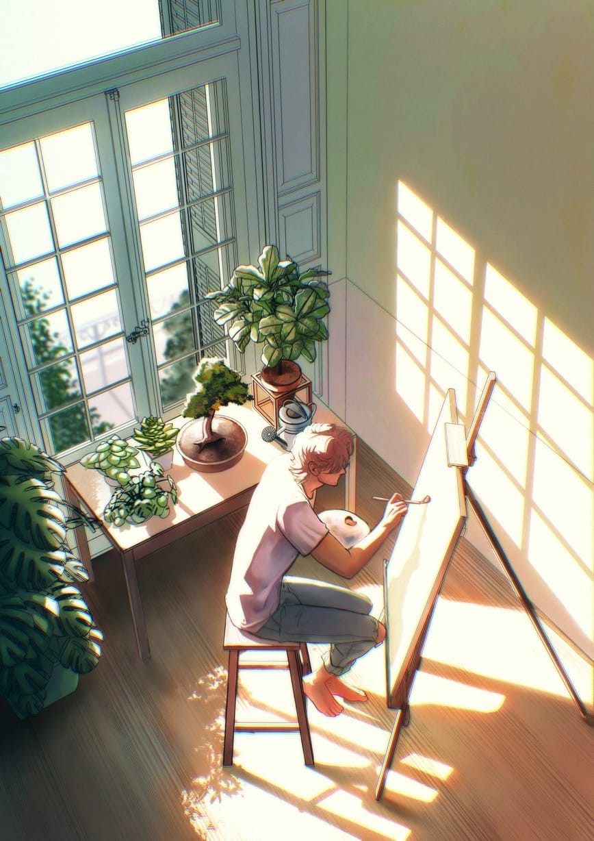 I don't use AI generators. Not to sketch, not to fill backgrounds, not to speed anything up. Every piece is drawn by hand in Clip Studio Paint EX, from the first rough sketch to the final render.